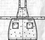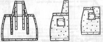 | 1 2 3 4 5 | Наложить и приколоть карманы, совмещая верхнюю и боковые стороны с копировальными стежками, проложенными на нижней части фартука. Приметать карманы к фартуку, удалить копировальные стежки. Настрочить карманы с трех сторон на 0,1—0,2 см от края, закрепляя верхние углы в форме треугольника. Удалить сметочные стежки. Проверьте: 1) ровноту настрачивания строчки от края; 2) правильность расположения кармана (измерить расстояние карманов от верхних срезов и боковых сторон). |