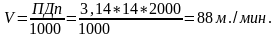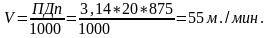 V=304×0,45×0,5×0,81=55 м/мин