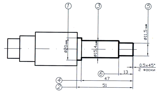 3. Точить поверхность 4 выдерживая размер 5