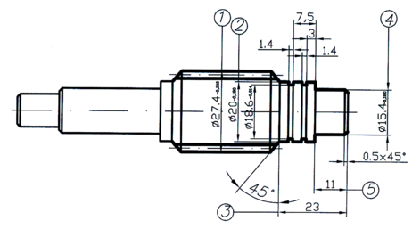 2 Точить поверхность 2 выдерживая размер 3 и два угла 45°.