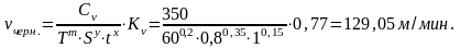 Кт–коэффициент, характеризующий группу стали по обрабатываемости, Кт = 1, nv = 1,