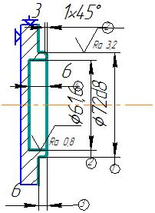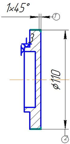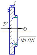 Подрезать внутренний торец большого фланца и торец центрирующего пояска, выдерживая размер 3. Точить наружную поверхность центрирующего пояска, выдерживая размеры 1и 3. Расточить внутреннюю поверхность, выдерживая размер 2 и 4.