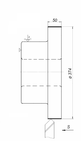 устанавливают подачи станка, исходя из прочности державки и пластинки из твердого сплава, жесткости станка и характера установки заготовки;