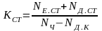 4. Коэффициент стандартизации изделия Кст — отношение числа стандартных сборочных единиц Nе.ст изделия и его стандартных деталей Nд.ст, не вошедших в состав сборочных единиц, к общему числу составных частей изделия без учета стандартных крепежных деталей: