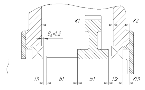 Для размерного анализа выберем сборочную размерную цепь, замыкающим звеном В∆ которой является выступающая из корпуса часть подшипника.