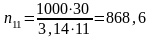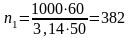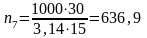 Рассчитываем частоты вращения шпинделя nи для каждого инструмента по формуле: