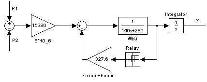 Структурная схема S-модели механики пневмопривода изображена на рисунке 11.