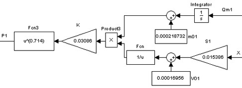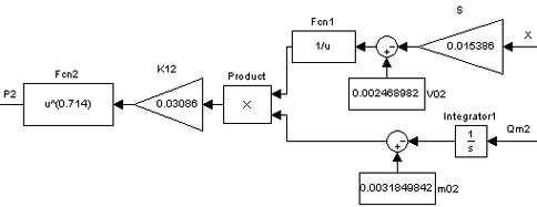 Из выражений 2.13, 2.14 видно, что входной величиной для моделей аэромеханики воздуха в полостях пневмоцилиндра является давление в соответствующих областях, а выходной – массовый расход в соответствующих областях.