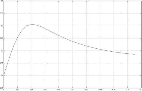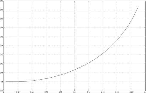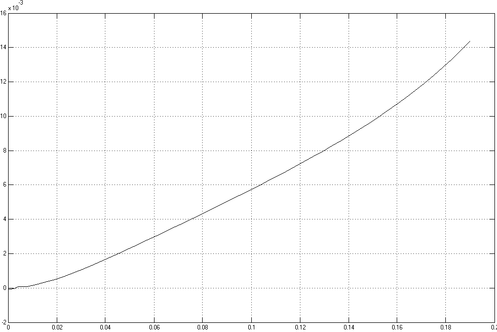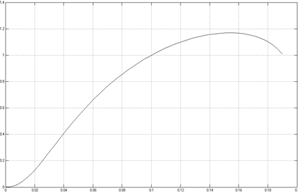 На рисунке 17 приведен график зависимости перемещения поршня цилиндра от времени до достижения им крайнего правого положения (x=h=200мм).