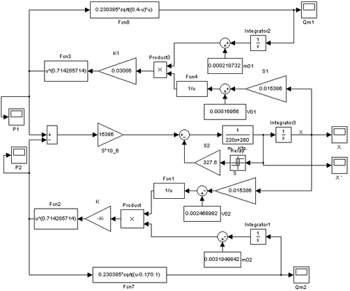 Рассчитанные в пунктах 2.3, 2.4 и 2.5 данной работы модели для получения общей математической модели пневмопривода следует собрать в одну систему. При разработке модели всего привода пользуемся приложением Simulink пакета программ MATLAB.