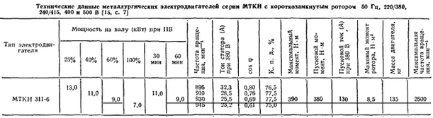 Исходя из Р и режима работы электропривода, выбираем двигатель MTKH 311–6, U=380В, f=50 Гц, P=9 кВт, защищенный с независимой вентиляцией (продуваемый), режим ПВ = 60%.