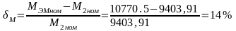Найдем относительную разницу между электромагнитным моментом и моментом на валу: