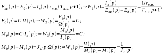 Для построения структурной схемы двигателя пишем систему дифференциальных уравнений в операторном виде: