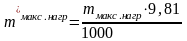 Переведем массу максимальной нагрузки в мега ньютоны, используя формулу (3.10).