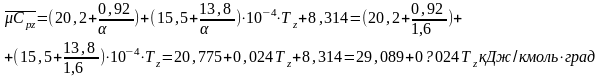 Средняя молярная теплоемкость заряда(воздуха) в конце сжатия (без учета влияния остаточных газов):