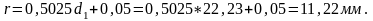 Расстояние от вершины зуба до линии центров дуг закруглений