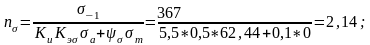 Допускаемый запас прочности по переменным напряжениям [n]=1,6 ([3], табл. 2П).