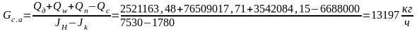 Qрасх=2521163,48+76509017,71+3542084,15-13197*1780=106062925