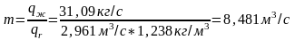 объемный расход воздуха=13.894 куб.м/кг