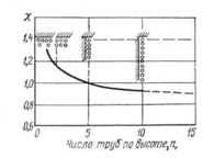 Рисунок 2.4 - Коэффициент χ для учета влияния количества и способа расположения труб по высоте.