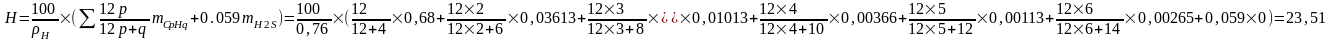 Сероводород m Н2S = 1,521 × 0,01 (Н2S)v = 1,512 × 0,01 × 0,000 = 0