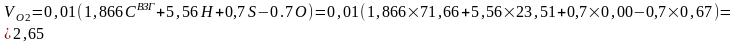 Объем кислорода, необходимого для горения VO2, нм 3/кг