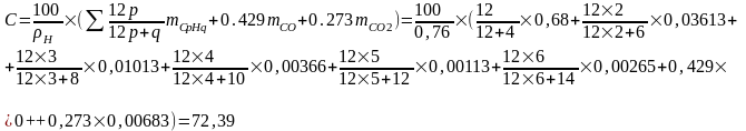 Окись углерода m СО = 1,25 × 0,01 (СО)v = 1,25 × 0,01 × 0,000 = 0