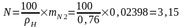Азот m N2 = 1,25 × 0,01 (N2)v = 1,25 × 0,01 × 1,918 = 0,02398