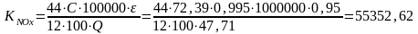 Пересчет значения измеренной концентрации в показатель эмиссии, г/ГДж