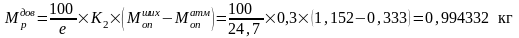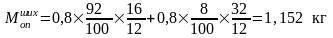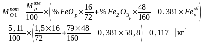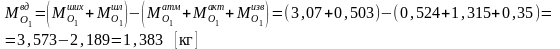 МактО1 = М1Овосст – МпотО1 = 1,43 – 0,117 = 1,315 кг