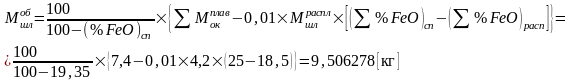 | Руда железная 1 период | 5,113913 | Шлак спущенный (Мшлсп) | 5,306278 |