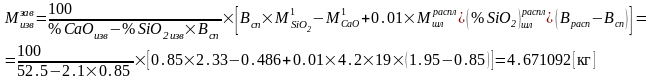 | Итого: | - | SiO22 = 0.945413 | CaO2 = 1.827251 |