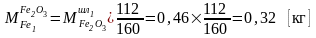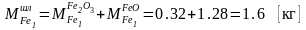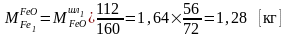 М1Feвосст= М1Fe2O3 112 / 160+ M1FeO 56 / 72=4,499 112 / 160 + 0,373 56 / 72 = 3,44 кг