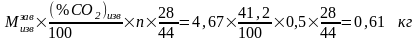 СО2 = 0,667 + 0,962 + 0,008 + 0,0654 + 0,00187 = 1,704909 кг