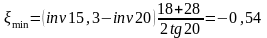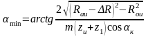 Минимальный коэффициент смещения ξmin, при котором высота среза кромки колеса будет равняется допустимой величине ∆R, определяется по формуле