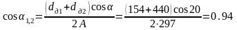 А1,2=0,5 (dd1 + dd2);