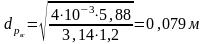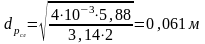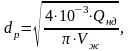Расчетное значение диаметра гидролинии dp , м, определяется по формуле: