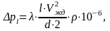 Определяем коэффициент путевых потерь λ (коэффициент Дарси) для турбулентного режима по формуле:
