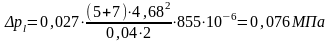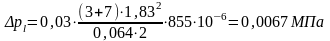 ∆pсл=0,0067+0,00057=0,00727 МПа