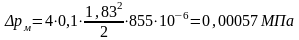 Потери давления в местном сопротивлении ∆pм , МПа, определяются по формуле: