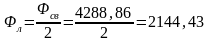Т.к. используем двухламповый светильник, то световой поток одной лампы будет равен: