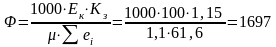 где:еi – условная освещенность в контрольной точке от i-го светильника со световым потоком в 1000 лм, которую определяют по формуле:
