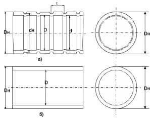 Рисунок 2. Труба с кольцевыми выступами и гладкая труба