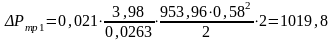 Определим потери давления на трение по трубному пространству:
