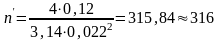 Определяем приблизительное число труб в одном ходу:
