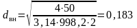 DBH – внутренний диаметр обечайки, мм; DВН = 800 мм;