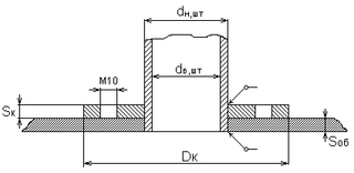 Если диаметр штуцера больше предельного диаметра отверстия, то такое отверстие должно быть укреплено. Условие достаточности укрепления отверстий за счет толщины стенки штуцера определяется по формуле: