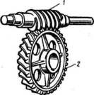 Червячной передачей называется механизм, служащий для преобразования вращательного движения между валами со скрещивающимися осями. Обычно червячная передача (рис.1) состоит из червяка 1 и сопряженного с ним червячного колеса 2. Угол скрещивания осей обычно равен 90°; неортогональные передачи встречаются редко. Червячные передачи относятся к передачам зацеплением, в которых движение осуществляется по принципу винтовой пары. Червячную передачу можно получить из рассмотренной ранее винтовой зубчатой передачи, если уменьшить число зубьев одного из косозубых колес до z1= 1...4 и увеличить их угол наклона к оси, превратив таким образом косозубое колесо в винт (червяк). Поэтому червячные передачи относят к категории зубчато-винтовых.