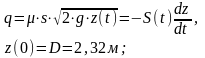 Обозначим z(t) – уровень топлива в резервуаре, считая от дна. Поскольку площадь отверстия мала, то распределение давления по высоте резервуара можно принять гидростатическим. Тогда