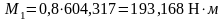 | M, Н∙м | 216,17 | 393,576 | 563,803 | 604,316 | 588,658 | 553,32 | 513,294 | 474,46 | 438,847 | 406,924 | 378,56 |